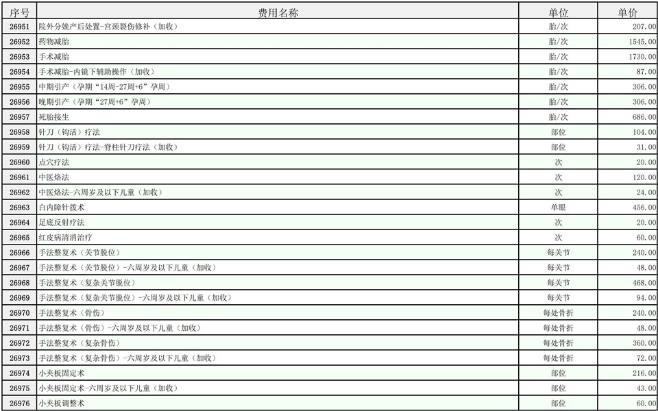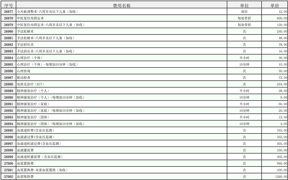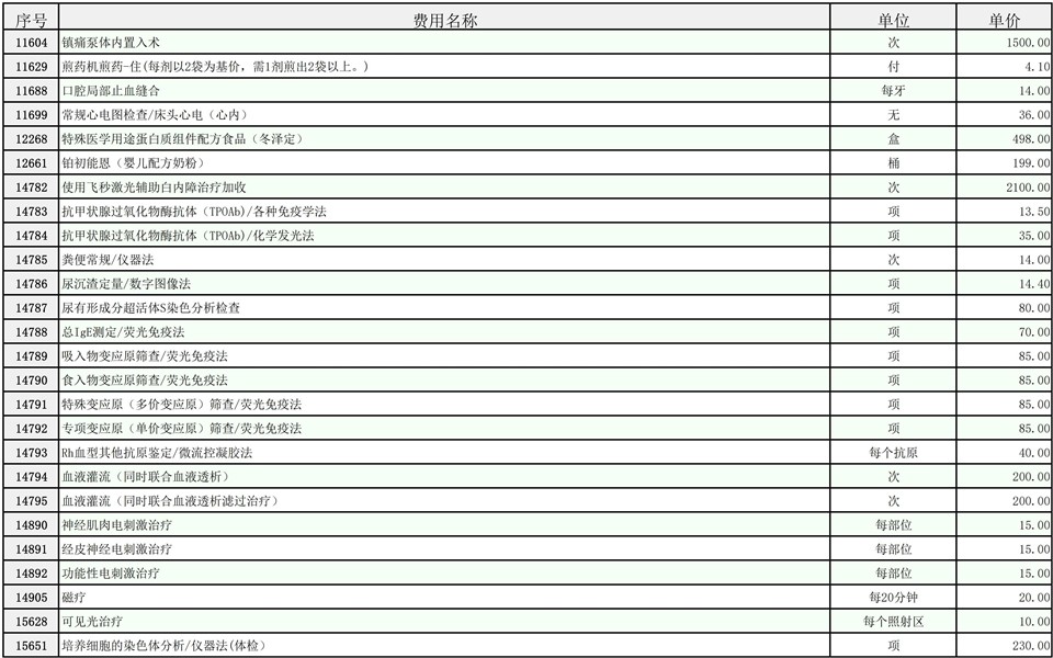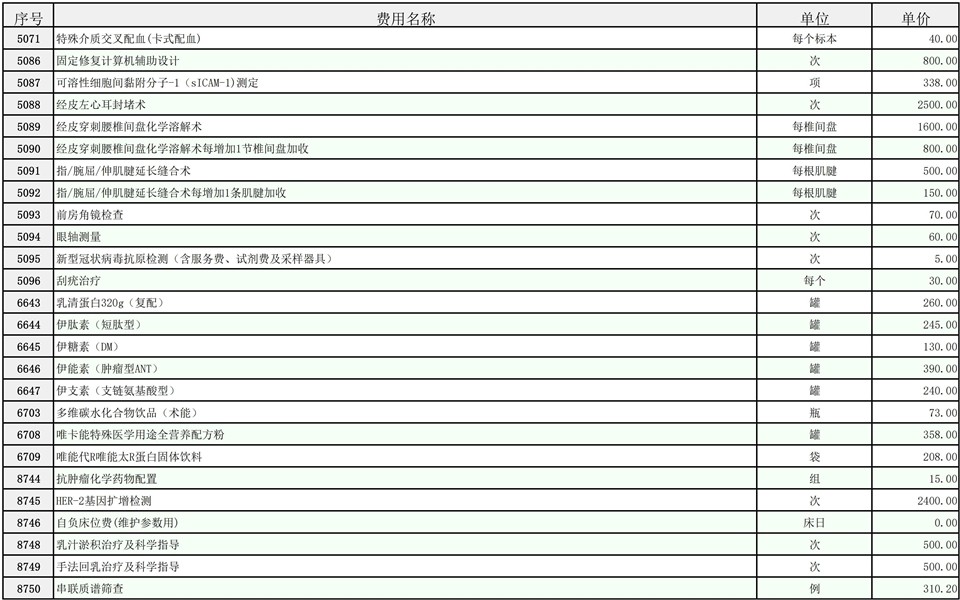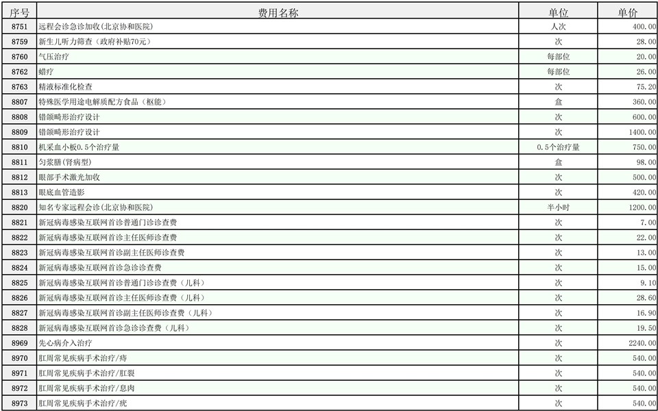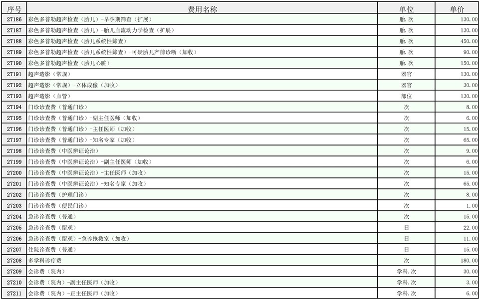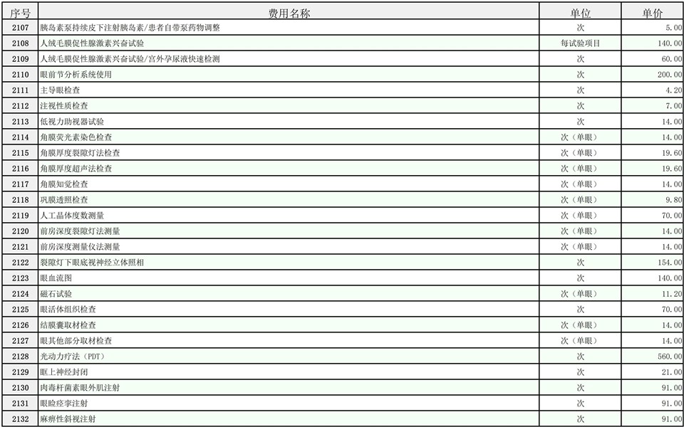 2026年大庆油田总医院医疗服务项目价格公示