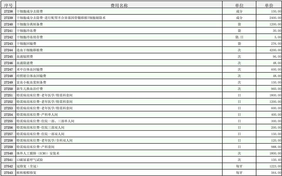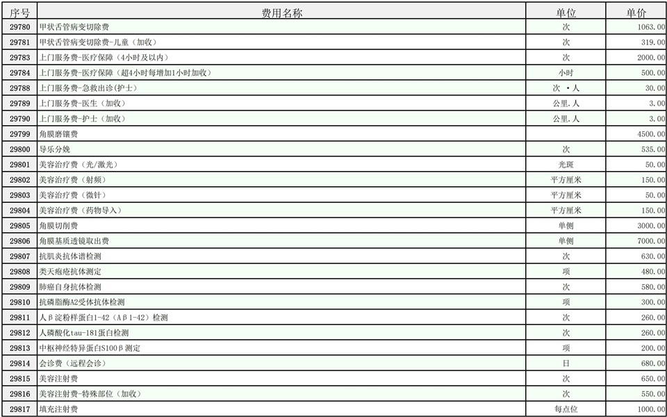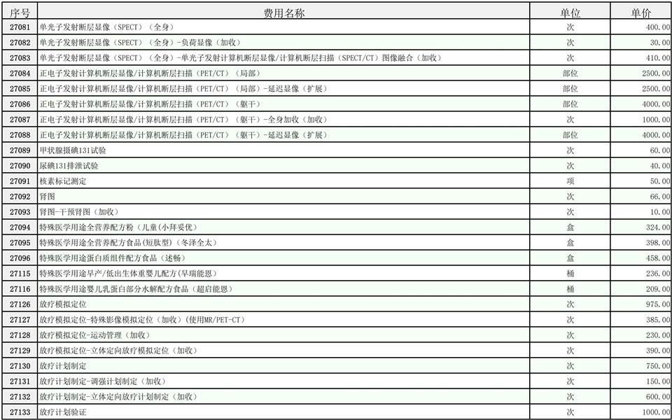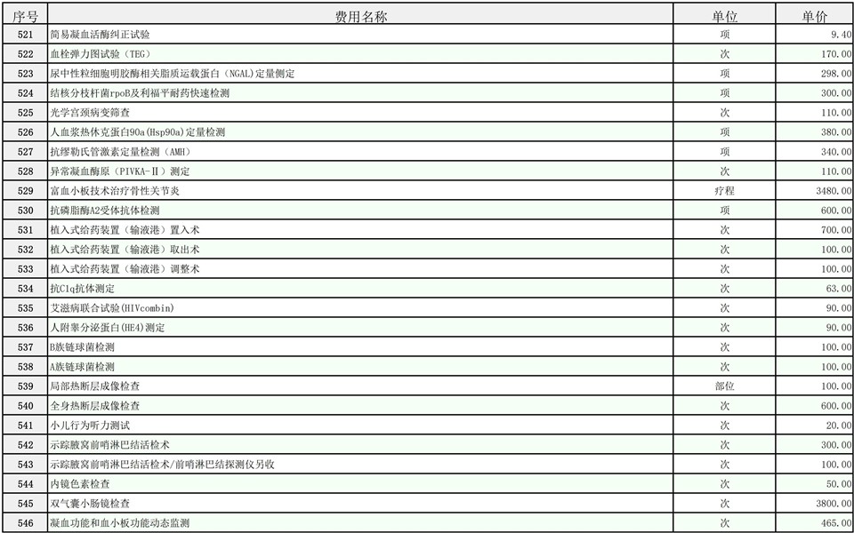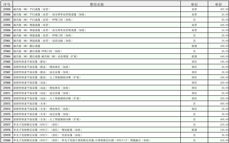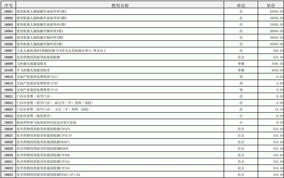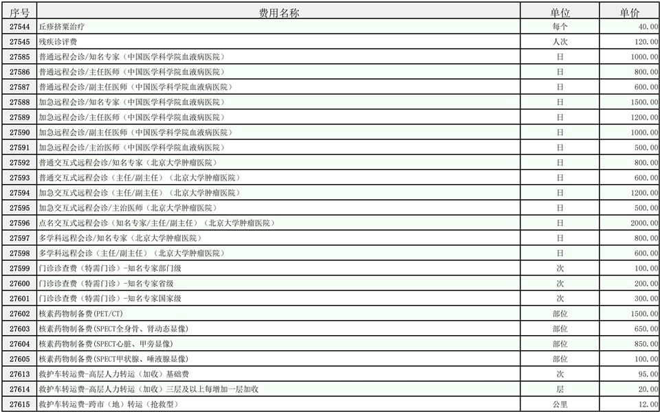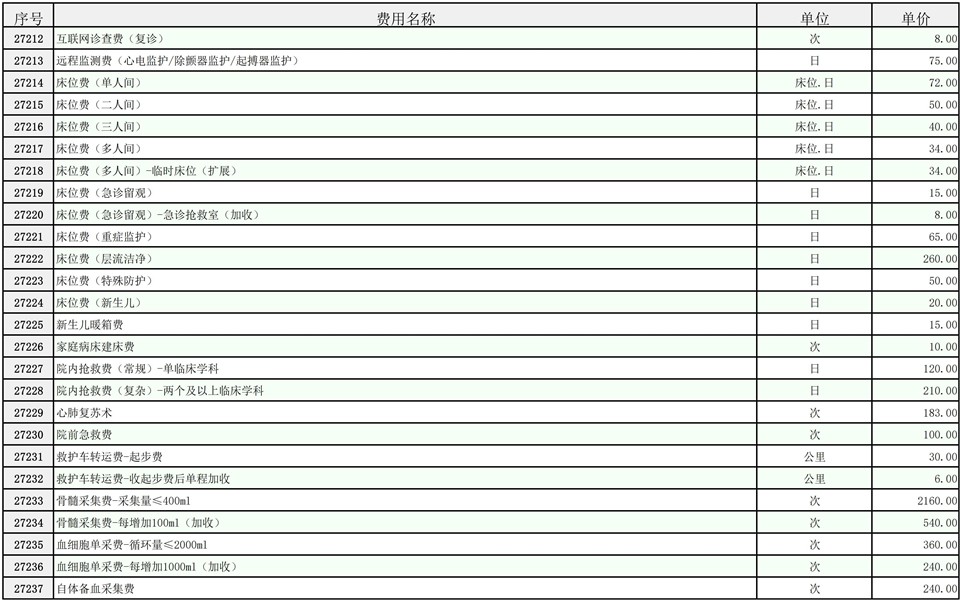 2026年大庆油田总医院医疗服务项目价格公示